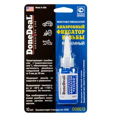 Вы, наверное, уже устали от постоянно раскручивающихся болтов и гаек? DD 6673 АНАЭРОБНЫЙ ФИКСАТОР РЕЗБЫ РАЗЪЁМНЫЙ СИНИЙ 10 МЛ спасет вас от этой головной боли. Он надежно фиксирует резьбовые соединения, предотвращая их самопроизвольное раскручивание.