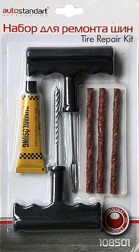 Este un set complet pentru repararea anvelopelor, inclusiv un ghid de utilizare.